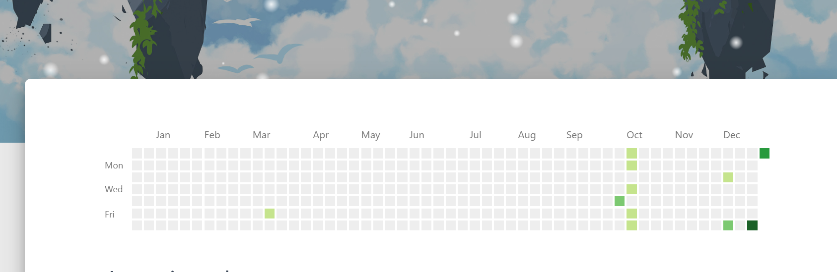 2 添加Github Chart 2.1 什么是github chart? github chart是在github中用于显示提交频次的绿色日历。
